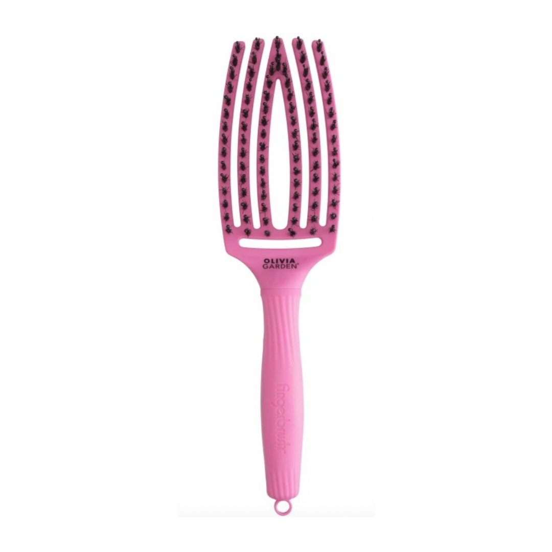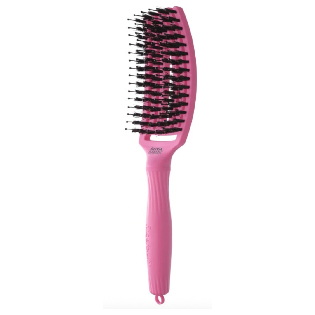Olivia Garden Fingerbrush je revoluční kartáč navržený pro snadné a šetrné rozčesávání vlasů. Jeho zakřivený tvar dokonale kopíruje tvar hlavy, což zajišťuje maximální pohodlí při používání a precizní styling. Kartáč kombinuje 100% kančí štětiny a nylonové štětiny, které dodávají vlasům přirozený lesk, zároveň zajišťují jemné a efektivní rozčesávání, aniž by vlasy tahaly nebo poškozovaly.
